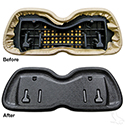 Covers staples on reupholstered Club Car Precedent seat back cushion.
