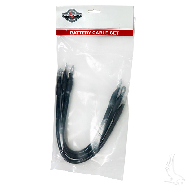 Standard battery cables with 5/16" ring terminals.