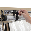 Side doors unzip and roll open.