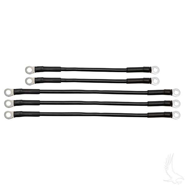 Standard battery cables with 5/16" ring terminals.
