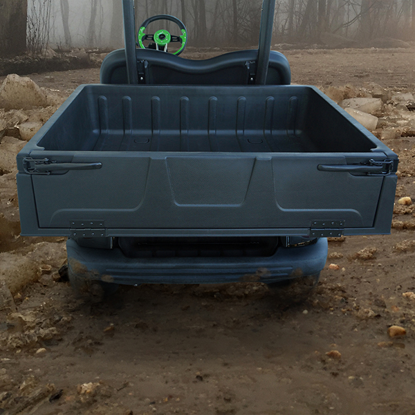 Heavy duty thermoplastic utility box converts a golf cart to an OEM style utility vehicle.