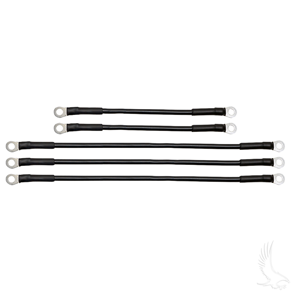 Standard battery cables with 5/16" ring terminals.