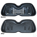 Fits onto seat back area exposed during installation of seat kits.